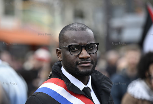 Légende : Manifestation contre le racisme et le fascisme à l'occasion de la journée internationale pour l'élimination de la discrimination raciale. Carlos Martens Bilongo, député LFI /// Demonstration against racism and fascism on the occasion of the International Day for the Elimination of Racial Discrimination. Carlos Martens Bilongo, MP of La France Insoumise - Paris - 22/03/2025 - Photo © Lionel Préau +33 (0)6 68 12 83 77