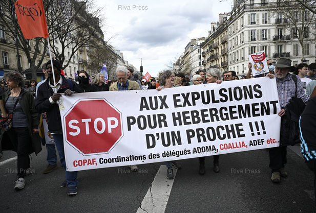 Légende : Manifestation contre le racisme et le fascisme à l'occasion de la journée internationale pour l'élimination de la discrimination raciale. COPAF, Collectif pour l'avenir des foyers, "Stop aux expulsions pour hébergement d'un proche" /// Demonstration against racism and fascism on the occasion of the International Day for the Elimination of Racial Discrimination. COPAF, Collective for the Future of Homes, "Stop evictions for housing a loved one" - Paris - 22/03/2025 - Photo © Lionel Préau +33 (0)6 68 12 83 77