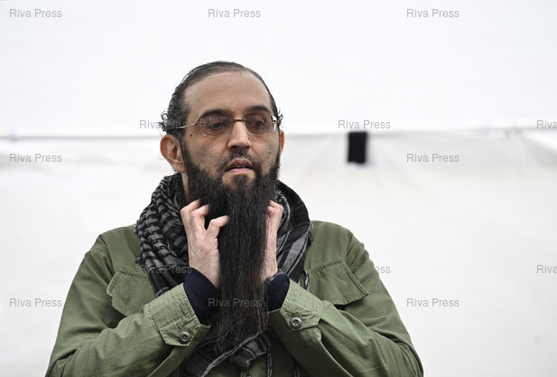 Légende : Manifestation contre le racisme et le fascisme à l'occasion de la journée internationale pour l'élimination de la discrimination raciale. Eli Yess Zareli, dit Elias d'Imzalène, islamiste fiché, fondateur de Perspectives musulmanes, président de Islam & Infos /// Demonstration against racism and fascism on the occasion of the International Day for the Elimination of Racial Discrimination. Eli Yess Zareli, known as Elias d'Imzalène, piblic recorded Islamist, founder of Muslim Perspectives, president of Islam & Infos - Paris - 22/03/2025 - Photo © Lionel Préau +33 (0)6 68 12 83 77