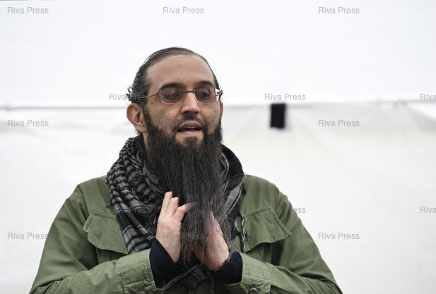 Légende : Manifestation contre le racisme et le fascisme à l'occasion de la journée internationale pour l'élimination de la discrimination raciale. Eli Yess Zareli, dit Elias d'Imzalène, islamiste fiché, fondateur de Perspectives musulmanes, président de Islam & Infos /// Demonstration against racism and fascism on the occasion of the International Day for the Elimination of Racial Discrimination. Eli Yess Zareli, known as Elias d'Imzalène, piblic recorded Islamist, founder of Muslim Perspectives, president of Islam & Infos - Paris - 22/03/2025 - Photo © Lionel Préau +33 (0)6 68 12 83 77