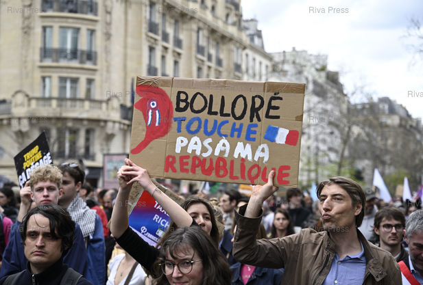 Légende : Manifestation contre le racisme et le fascisme à l'occasion de la journée internationale pour l'élimination de la discrimination raciale. "Bolloré, touche pas à ma république" /// Demonstration against racism and fascism on the occasion of the International Day for the Elimination of Racial Discrimination. "Bolloré, don't touch my republic" - Paris - 22/03/2025 - Photo © Lionel Préau +33 (0)6 68 12 83 77