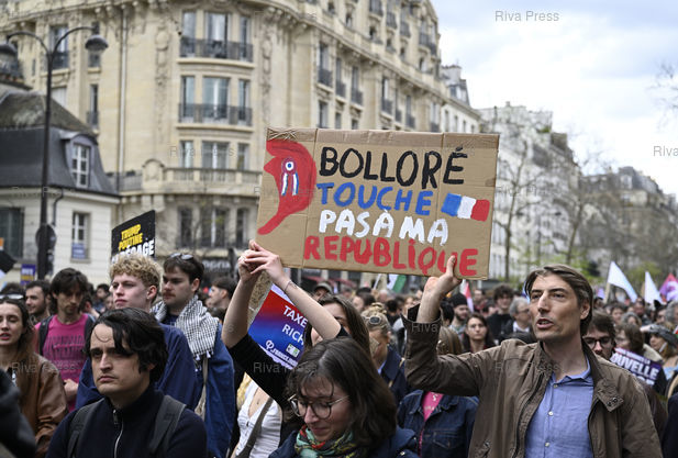 Légende : Manifestation contre le racisme et le fascisme à l'occasion de la journée internationale pour l'élimination de la discrimination raciale. "Bolloré, touche pas à ma république" /// Demonstration against racism and fascism on the occasion of the International Day for the Elimination of Racial Discrimination. "Bolloré, don't touch my republic" - Paris - 22/03/2025 - Photo © Lionel Préau +33 (0)6 68 12 83 77