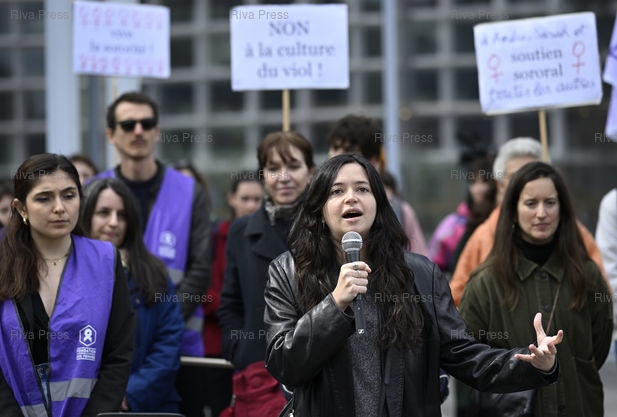 Légende : Des féministes manifestent devant le tribunal judiciaire de Paris avant le début du procès de l'acteur Gérard Depardieu, jugé pour agression sexuelle sur deux femmes lors d'un tournage /// Feminists protest outside the Paris courthouse ahead of the start of the trial of actor Gérard Depardieu, who is on trial for sexually assaulting two women during a film shoot - Paris - 24/03/2025 - Photo © Lionel Préau +33 (0)6 68 12 83 77