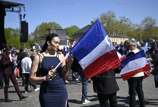 Légende : Meeting de soutien à Marine Le Pen à l'appel du Rassemblement national, une semaine après la condamnation de Marine Le Pen à 4 ans de prison et 5 ans d'inéligibilité dans l'affaire des assistants parlementaires européens - Place Vauban /// Rally in support of Marine Le Pen, called by the Rassemblement National far-right party, one week after Marine Le Pen was sentenced to four years in prison and five years of ineligibility in the European parliamentary assistants affair - Place Vauban - Paris - 06/04/2025 - Photo © Lionel Préau +33 (0)6 68 12 83 77