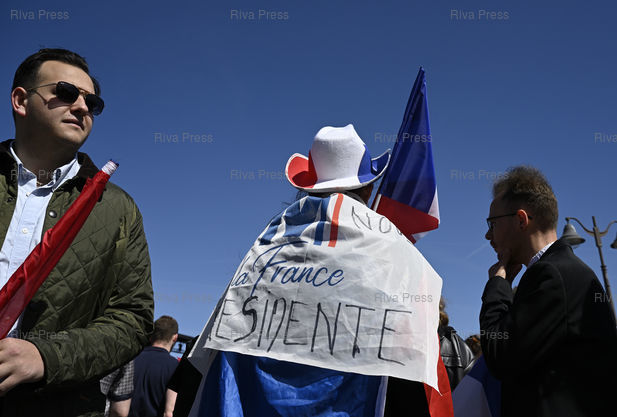 Légende : Meeting de soutien à Marine Le Pen à l'appel du Rassemblement national, une semaine après la condamnation de Marine Le Pen à 4 ans de prison et 5 ans d'inéligibilité dans l'affaire des assistants parlementaires européens - Place Vauban /// Rally in support of Marine Le Pen, called by the Rassemblement National far-right party, one week after Marine Le Pen was sentenced to four years in prison and five years of ineligibility in the European parliamentary assistants affair - Place Vauban - Paris - 06/04/2025 - Photo © Lionel Préau +33 (0)6 68 12 83 77