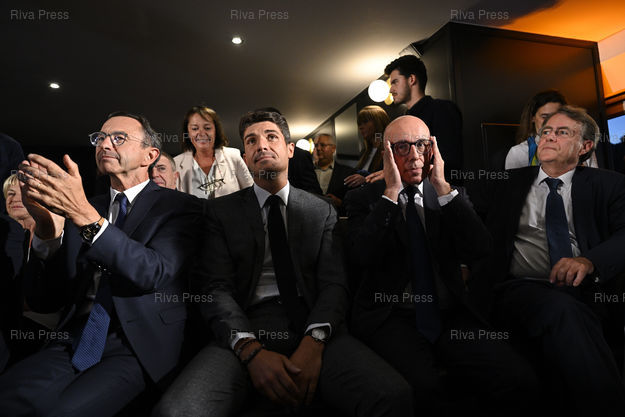 Légende : Rentrée de la Fédération Les Républicains de Paris - Péniche "Le Paquebot", Port de Javel. Bruno Retailleau, Aurélien Pradié, Eric Ciotti et Serge Grouard, candidats à la présidence des Républicains /// Return of the Federation Les Républicains de Paris - Barge "Le Paquebot", Port de Javel. Bruno Retailleau, Aurélien Pradié, Eric Ciotti and Serge Grouard, candidate for the presidency of Les Republicains - Paris - 21/09/2022 - Photo © Lionel Préau +33 (0)6 68 12 83 77
