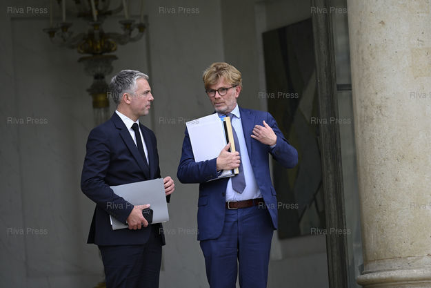 Légende : Conseil des ministres au palais de l'Elysée. Jean-Christophe Combe, ministre des Solidarités, de l'Autonomie et des Personnes handicapées - Marc Fesneau, ministre de l'Agriculture et de la Souveraineté alimentaire /// Cabinet meeting at the Elysee Palace. Jean-Christophe Combe, Minister of Solidarity, Autonomy and People with Disabilities - Marc Fesneau, Minister of Agriculture and Food Sovereignty - Paris - 07/07/2022 - Photo © Lionel Préau +33 (0)6 68 12 83 77