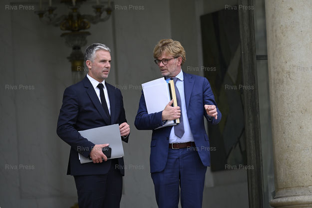 Caption : Conseil des ministres au palais de l'Elysée. Jean-Christophe Combe, ministre des Solidarités, de l'Autonomie et des Personnes handicapées - Marc Fesneau, ministre de l'Agriculture et de la Souveraineté alimentaire /// Cabinet meeting at the Elysee Palace. Jean-Christophe Combe, Minister of Solidarity, Autonomy and People with Disabilities - Marc Fesneau, Minister of Agriculture and Food Sovereignty - Paris - 07/07/2022 - Photo © Lionel Préau +33 (0)6 68 12 83 77