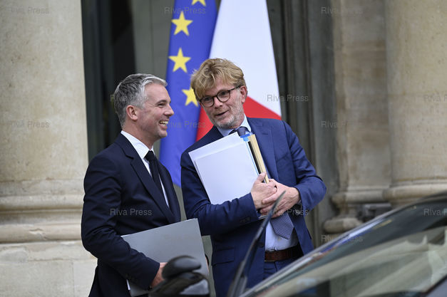 Caption : Conseil des ministres au palais de l'Elysée. Jean-Christophe Combe, ministre des Solidarités, de l'Autonomie et des Personnes handicapées - Marc Fesneau, ministre de l'Agriculture et de la Souveraineté alimentaire /// Cabinet meeting at the Elysee Palace. Jean-Christophe Combe, Minister of Solidarity, Autonomy and People with Disabilities - Marc Fesneau, Minister of Agriculture and Food Sovereignty - Paris - 07/07/2022 - Photo © Lionel Préau +33 (0)6 68 12 83 77