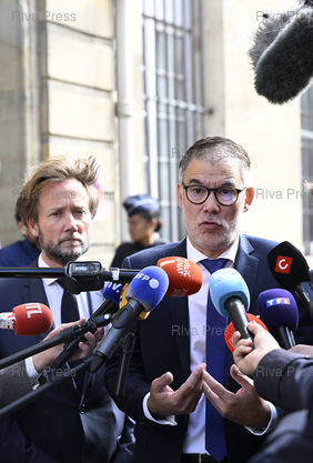 Légende : Le Parti socialiste à l'issue de son entretien avec le premier ministre Sébastien Lecornu dans le cadre de ses consultations sur le budget. Boris Vallaud, Président du groupe socialiste à l'Assemblée nationale - Olivier Faure, Premier secrétaire du PS /// The Socialist Party following its meeting with Prime Minister Sébastien Lecornu as part of his consultations about the budget. Boris Vallaud, President of the Socialist Group in the National Assembly - Olivier Faure, First Secretary of the Socialist Party - Paris - 17/09/2025 - Photo © Lionel Préau +33 (0)6 68 12 83 77