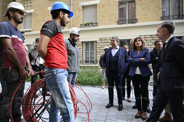 Légende : Anne Hidalgo, maire de Paris, annonce des premières mesures de sobriété énergétique pour la Ville de Paris pour faire face aux conséquences de la guerre en Ukraine et à la crise du pouvoir d’achat. Visite d'un chantier de rénovation énergétique Paris Habitat dans le 13e arrondissement. En présence de Jérôme Coumet, maire du 13e arrondissement, Emmanuel Grégoire, Premier adjoint à la Maire de Paris /// Anne Hidalgo, Mayor of Paris, announces firsts energy sobriety measures for the City of Paris to deal with the consequences of the war in Ukraine and the purchasing power crisis. Visit of a Paris Habitat energy renovation site in the 13th arrondissement. With Jérôme Coumet, mayor of the 13th arrondissement, Emmanuel Grégoire, First Deputy Mayor of Paris - Paris - 13/09/2022 - Photo © Lionel Préau +33 (0)6 68 12 83 77