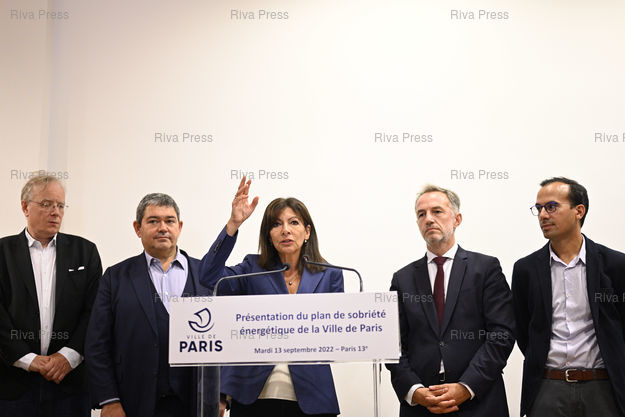 climat, de l'eau et de l'énergie /// Anne Hidalgo, Mayor of Paris, announces firsts energy sobriety measures for the City of Paris to deal with the consequences of the war in Ukraine and the purchasing power crisis. With Jacques Baudrier, deputy mayor of Paris in charge of public construction, site monitoring, coordination of works in public spaces and ecological transition of buildings, Jérôme Coumet, mayor of the 13th arrondissement, Emmanuel Grégoire, First Deputy Mayor of Paris, Dan Lert, Deputy Mayor of Paris in charge of the ecological transition, the climate, water and energy plan - Paris - 13/09/2022 - Photo © Lionel Préau +33 (0)6 68 12 83 77