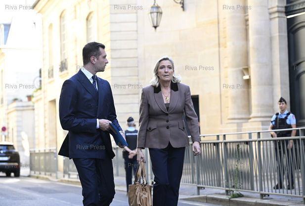 Légende : Jordan Bardella, président du RN, et Marine Le Pen, présidente du groupe RN à l'Assemblée nationale, à l'issue de leurentretien avec le premier ministre Sébastien Lecornu dans le cadre de ses consultations sur le budget /// Jordan Bardella, president of the Rassemblement National, and Marine Le Pen, president of the RN group in the National Assembly, following their meeting with Prime Minister Sébastien Lecornu as part of his consultations on the budget - Paris - 17/09/2025 - Photo © Lionel Préau +33 (0)6 68 12 83 77