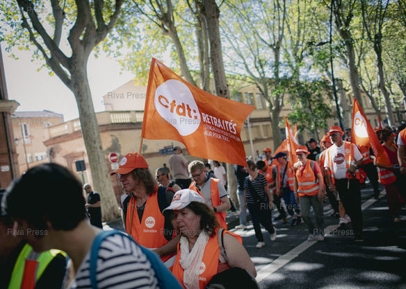 Légende : Toulouse, le 18 septembre 2025 - Cortège de la CFDT. Manifestation intersyndicale contre la politique du président et du gouvernement et pour peser sur les choix budgétaires à l'approche du projet de loi de finances pour 2026. PHOTO: Vincent NGUYEN / Riva Press ***