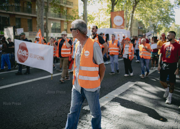 *** Toulouse, September 18, 2025 - Unionist of the CFDT. Inter-union demonstration against the policies of the President and the government and to influence budgetary choices in the run-up to the 2026 finance bill.