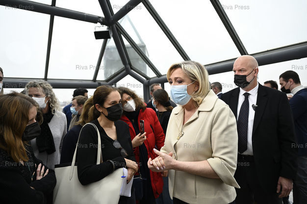 Légende : Marine Le Pen, candidate du Rassemblement national à l'élection présidentielle, présente ses voeux à la presse. Echange avec des journalistes /// Marine Le Pen, candidate of the Rassemblement National Party to the presidential election, presents her wishes to the press. Speaking with journalists - Paris - 26/01/2022 - Photo © Lionel Préau +33 (0)6 68 12 83 77