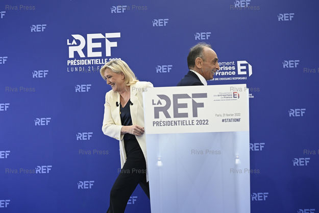 Légende : Les candidats à l'élection présidentielle présentent leurs programmes économiques devant le MEDEF. Marine Le Pen, candidate du Rassemblement national, et Eric Zemmour, candidat de Reconquête! /// Candidates for the presidential election present their economic programs to the MEDEF, business leaders organization. Marine Le Pen, candidate of the far-right Rassemblement National Party, and Eric Zemmour, candidate of the other far-right Party Reconquête! - Paris - 21/02/2022 - Photo © Lionel Préau +33 (0)6 68 12 83 77