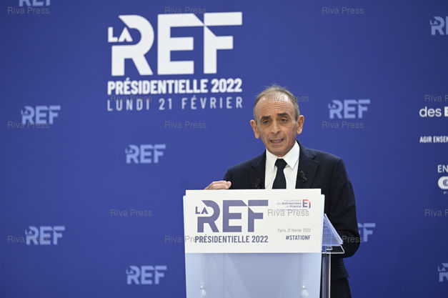 Légende : Les candidats à l'élection présidentielle présentent leurs programmes économiques devant le MEDEF. Eric Zemmour, candidat de Reconquête! /// Candidates for the presidential election present their economic programs to the MEDEF, business leaders organization. Eric Zemmour, candidate of the far-right Party Reconquête! - Paris - 21/02/2022 - Photo © Lionel Préau +33 (0)6 68 12 83 77
