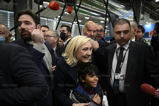 Légende : Marine Le Pen, candidate du Rassemblement national à l'élection présidentielle, visite le Salon de l'agriculture. A gauche, Leif Blanc, délégué national à la ruralité, l'agriculture et l'environnement /// Marine Le Pen, candidate of the Rassemblement National Party to the presidential elections, visits the Agricultural Show. On the left, Leif Blanc, national delegate for rurality, agriculture and the environment - Paris - 02/03/2022 - Photo © Lionel Préau +33 (0)6 68 12 83 77