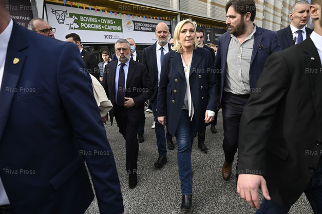 Légende : Marine Le Pen, candidate du Rassemblement national à l'élection présidentielle, visite le Salon de l'agriculture. A droite, Leif Blanc, délégué national à la ruralité, l'agriculture et l'environnement /// Marine Le Pen, candidate of the Rassemblement National Party to the presidential elections, visits the Agricultural Show. On the right, Leif Blanc, national delegate for rurality, agriculture and the environment - Paris - 02/03/2022 - Photo © Lionel Préau +33 (0)6 68 12 83 77