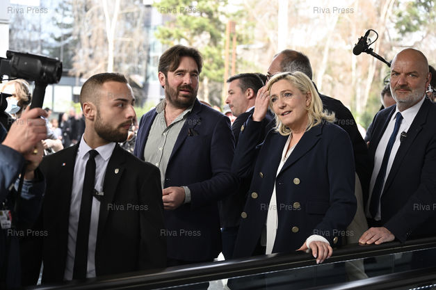 Légende : Marine Le Pen, candidate du Rassemblement national à l'élection présidentielle, visite le Salon de l'agriculture. Entre Leif Blanc, délégué national à la ruralité, l'agriculture et l'environnement, et Thierry Légier, garde du corps /// Marine Le Pen, candidate of the Rassemblement National Party to the presidential elections, visits the Agricultural Show. Between Leif Blanc, national delegate for rurality, agriculture and the environment, and Thierry Légier, bodyguard - Paris - 02/03/2022 - Photo © Lionel Préau +33 (0)6 68 12 83 77
