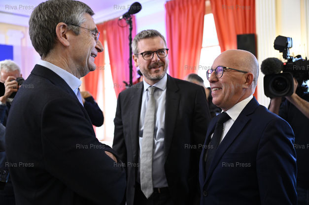 Légende : Valérie Pécresse, candidate des Républicains à l'élection présidentielle, présente à la presse son projet pour rétablir l'ordre. Frédéric Péchenard - Thibault de Montbrial - Eric Ciotti /// Valérie Pécresse, candidate of Les Républicains party for the presidential elections, presents to the press her plan to restore order. Frédéric Péchenard - Thibault de Montbrial - Eric Ciotti - Paris - 24/03/2022 - Photo © Lionel Préau +33 (0)6 68 12 83 77