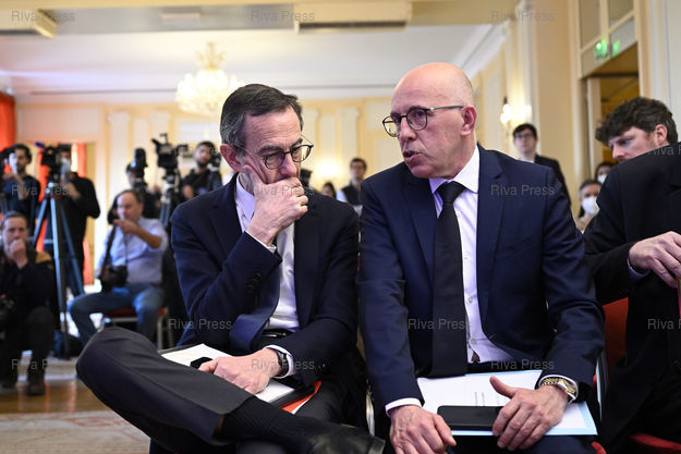 Légende : Valérie Pécresse, candidate des Républicains à l'élection présidentielle, présente à la presse son projet pour rétablir l'ordre. Bruno Retailleau et Eric Ciotti /// Valérie Pécresse, candidate of Les Républicains party for the presidential elections, presents to the press her plan to restore order. Bruno Retailleau and Eric Ciotti - Paris - 24/03/2022 - Photo © Lionel Préau +33 (0)6 68 12 83 77