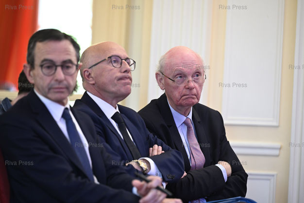 Légende : Valérie Pécresse, candidate des Républicains à l'élection présidentielle, présente à la presse son projet pour rétablir l'ordre. Bruno Retailleau - Eric Ciotti - Patrick Stefanini /// Valérie Pécresse, candidate of Les Républicains party for the presidential elections, presents to the press her plan to restore order. Bruno Retailleau - Eric Ciotti - Patrick Stefanini - Paris - 24/03/2022 - Photo © Lionel Préau +33 (0)6 68 12 83 77