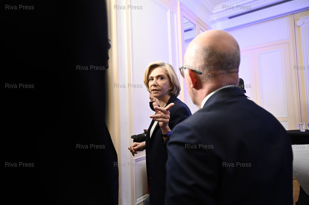 Légende : Valérie Pécresse, candidate des Républicains à l'élection présidentielle, présente à la presse son projet pour rétablir l'ordre. Valérie Pécresse après son discours face à Eric Ciotti /// Valérie Pécresse, candidate of Les Républicains party for the presidential elections, presents to the press her plan to restore order. Valérie Pécresse after her speech in front of Eric Ciotti - Paris - 24/03/2022 - Photo © Lionel Préau +33 (0)6 68 12 83 77