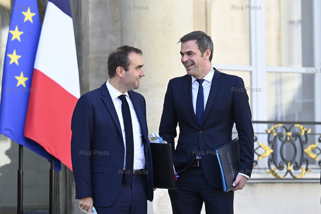 Légende : Conseil des ministres au palais de l'Elysée. Sébastien Lecornu, ministre des Outre-mer - Olivier Véran, ministre des Solidarités et de la Santé /// Cabinet meeting at the Elysee Palace. Sébastien Lecornu, Minister of Overseas - Olivier Véran, Minister of the Solidarities and Health - Paris - 22/09/2021 - Photo © Lionel Préau +33 (0)6 68 12 83 77