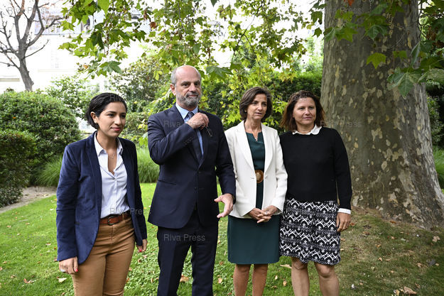 Légende : Conférence de presse de Jean-Michel Blanquer, Jean-Michel Blanquer,ministre de l'Éducation nationale, de la Jeunesse et des Sports, sur la rentrée scolaire. Sarah El Hairy, Secrétaire d'Etat chargée de la Jeunesse et de l'Engagement - Jean-Michel Blanquer - Nathalie Elimas, Secrétaire d'Etat chargée de l'Education prioritaire - Roxana Maracinéanu, ministre déléguée chargée des Sports /// Press conference of Jean-Michel Blanquer, , Minister of National Education, Youth and Sports, on the start of the school year. Sarah El Hairy, Junior Minister for Youth and Engagement - Jean-Michel Blanquer - Nathalie Elimas, Junior Minister in charge of Priority Education - Roxana Maracinéanu, Junior Minister in charge of Sports - Paris - 26/08/2021 - Photo © Lionel Préau +33 (0)6 68 12 83 77