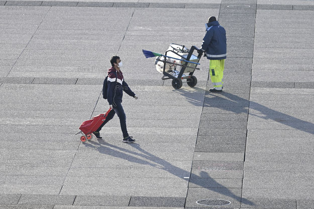 Mots-clés : 2020, alimentation, Ambiance, Atmosphere, chariot, confinement, containment, coronavirus, courses, Covid 19, covid19, eboueur, eboueurs, Economie, Esplanade, garbage, Homme, Illustration, La Défense, Man, Marche, Mask, Masque, Paris, paris la defense, parvis, poubelle, poussette, Proprete, quartier d'affaires