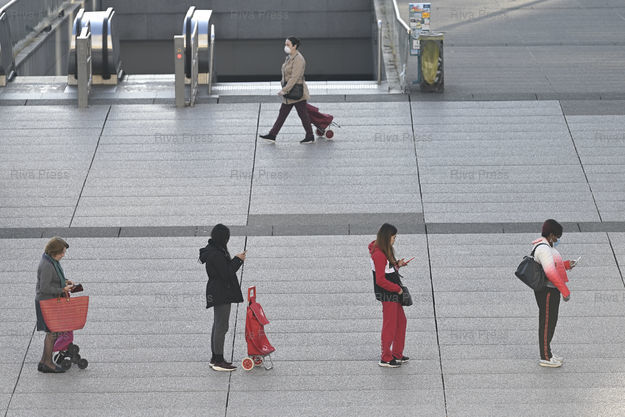 Mots-clés : 2020, alimentation, Ambiance, Atmosphere, chariot, confinement, containment, coronavirus, courses, Covid 19, covid19, distance securite, Economie, espace, espacement, Esplanade, file attente, file d'attente, Homme, Illustration, La Défense, Man, Marche, Mask, Masque, Paris, paris la defense, parvis, poussette, quartier d'affaires, queue, waiting line