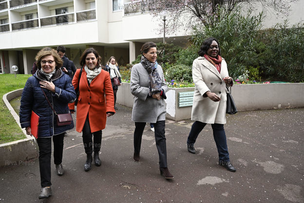 Légende : Agnès Buzyn rencontre les riverains du garage Nation dans le 12ème arrondissement, qui s'opposent au projet d'un promoteur privé de le raser et d'y construire 12 immeubles d'habitation. La candidate à la mairie de Paris entend revenir sur la politique de bétonisation de la ville, présente sa stratégie pour adapter la ville au changement climatique et son souhait de mettre en place une règle verte. En présence de Laeticia Avia, députée de Paris, Sandrine Mazetier, tête de liste dans le 12ème, Marie-France Séru, présidente de l'association de riverains /// Agnès Buzyn meets residents of the Nation garage in the 12th arrondissement, who oppose the project a private developer to raze it and build 12 apartment buildings there. The candidate for mayor of Paris intends to return to the city's concrete policy, presents her strategy to adapt the city to climate change and her wish to set up a green rule. With Laeticia Avia, MP of Paris, Sandrine Mazetier, head of list in the 12th, Marie-France Séru, president of the residents' association - Paris - 27/02/2020 - Photo © Lionel Préau +33 (0)6 68 12 83 77