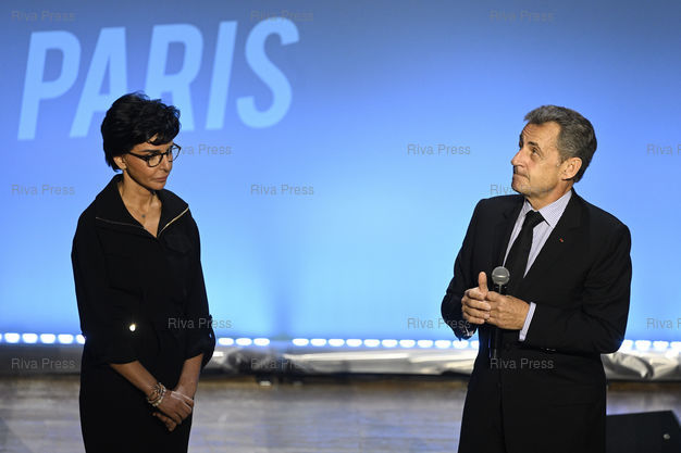 Légende : Meeting de Rachida Dati, candidate LR à la mairie de Paris, Salle Gaveau. En présence de Nicolas Sarkozy, ancien président de la république /// Meeting of Rachida Dati, LR Party candidate for mayor of Paris, Salle Gaveau. With Nicolas Sarkozy, former president of the republic - Paris - 09/03/2020 - Photo © Lionel Préau +33 (0)6 68 12 83 77