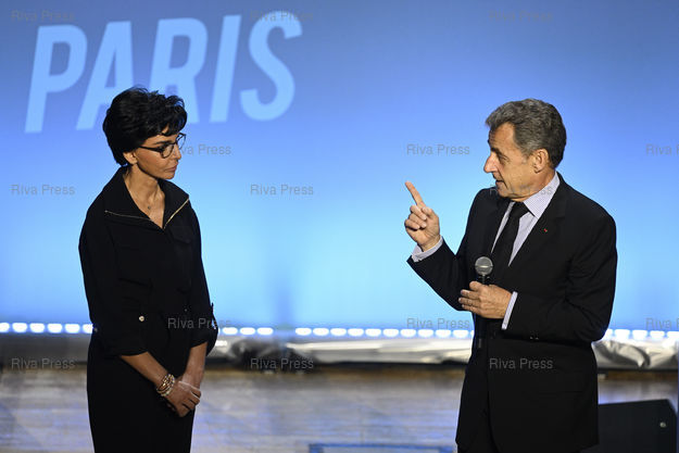 Légende : Meeting de Rachida Dati, candidate LR à la mairie de Paris, Salle Gaveau. En présence de Nicolas Sarkozy, ancien président de la république /// Meeting of Rachida Dati, LR Party candidate for mayor of Paris, Salle Gaveau. With Nicolas Sarkozy, former president of the republic - Paris - 09/03/2020 - Photo © Lionel Préau +33 (0)6 68 12 83 77