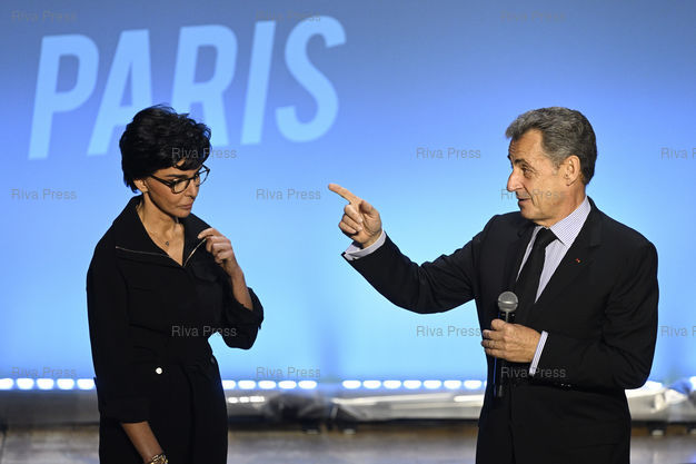 Légende : Meeting de Rachida Dati, candidate LR à la mairie de Paris, Salle Gaveau. En présence de Nicolas Sarkozy, ancien président de la république /// Meeting of Rachida Dati, LR Party candidate for mayor of Paris, Salle Gaveau. With Nicolas Sarkozy, former president of the republic - Paris - 09/03/2020 - Photo © Lionel Préau +33 (0)6 68 12 83 77