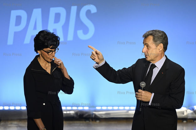 Légende : Meeting de Rachida Dati, candidate LR à la mairie de Paris, Salle Gaveau. En présence de Nicolas Sarkozy, ancien président de la république /// Meeting of Rachida Dati, LR Party candidate for mayor of Paris, Salle Gaveau. With Nicolas Sarkozy, former president of the republic - Paris - 09/03/2020 - Photo © Lionel Préau +33 (0)6 68 12 83 77