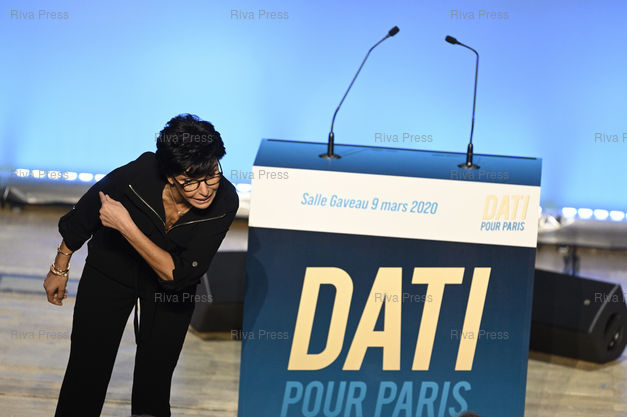 Légende : Meeting de Rachida Dati, candidate LR à la mairie de Paris, Salle Gaveau /// Meeting of Rachida Dati, LR Party candidate for mayor of Paris, Salle Gaveau - Paris - 09/03/2020 - Photo © Lionel Préau +33 (0)6 68 12 83 77