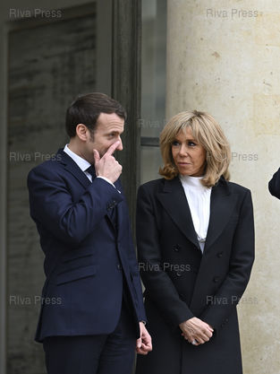 Légende : Emmanuel Macron et son épouse Brigitte Macron reçoivent leurs Majestés le Roi et la Reine d'Espagne Felipe VI et Letizia pour un déjeuner au Palais de l'Elysée dans le cadre de la première journée nationale d'hommage aux victimes du terrorisme /// Emmanuel Macron and his wife Brigitte Macron receive their Majesties the King and Queen of Spain Felipe VI and Letizia for a lunch at the 'Elysee Palace as part of the first national day of tribute to the victims of terrorism - Paris - 11/03/2020 - Photo © Lionel Préau +33 (0)6 68 12 83 77