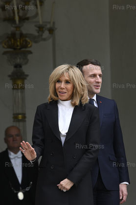 Légende : Emmanuel Macron et son épouse Brigitte Macron reçoivent leurs Majestés le Roi et la Reine d'Espagne Felipe VI et Letizia pour un déjeuner au Palais de l'Elysée dans le cadre de la première journée nationale d'hommage aux victimes du terrorisme /// Emmanuel Macron and his wife Brigitte Macron receive their Majesties the King and Queen of Spain Felipe VI and Letizia for a lunch at the 'Elysee Palace as part of the first national day of tribute to the victims of terrorism - Paris - 11/03/2020 - Photo © Lionel Préau +33 (0)6 68 12 83 77