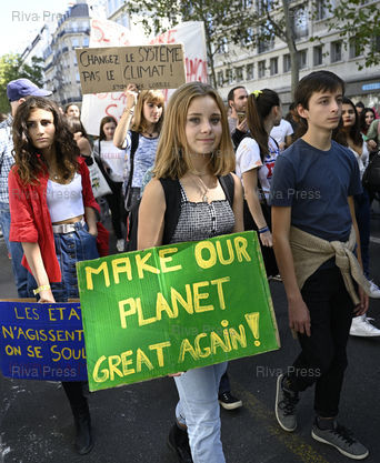 Légende : Grève mondiale des jeunes et marche pour le climat à la veille du Sommet de l'ONU pour le climat lundi à New York. "Make our planet great again !" /// Global Youth Strike and Climate Walk on the eve of the UN Climate Summit Monday in New York. "Make our planet great again !" - Paris - 20/09/2019 - Photo © Lionel Préau +33 (0)6 68 12 83 77