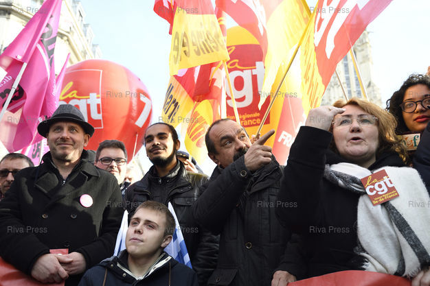 Caption : Manifestation à l'appel de la CGT, en présence de gilets jaunes, avec pour revendications : hausse des salaires, justice fiscale, opposition à la réforme du lycée, à l'augmentation des frais d'inscription des étudiants étrangers, droit de manifester, défense du service public. Philippe Martinez, secrétaire gfénéral de la CGT /// Demonstration at the call of the CGT (General Confederation of Labour) trade union, in the presence of yellow vests, with demands for: increase in wages, tax justice, opposition to the reform of high school, increased registration fees for foreign students, right to demonstrate, defense of the public service. Philippe Martinez, Secretary General of the CGT - Paris - 05/02/2019 - Photo © Lionel Préau +33 (0)6 68 12 83 77