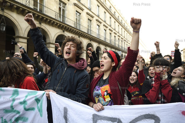 Caption : Manifestation à l'appel de la CGT, en présence de gilets jaunes, avec pour revendications : hausse des salaires, justice fiscale, opposition à la réforme du lycée, à l'augmentation des frais d'inscription des étudiants étrangers, droit de manifester, défense du service public. Lycéns /// Demonstration at the call of the CGT (General Confederation of Labour) trade union, in the presence of yellow vests, with demands for: increase in wages, tax justice, opposition to the reform of high school, increased registration fees for foreign students, right to demonstrate, defense of the public service. Students - Paris - 05/02/2019 - Photo © Lionel Préau +33 (0)6 68 12 83 77
