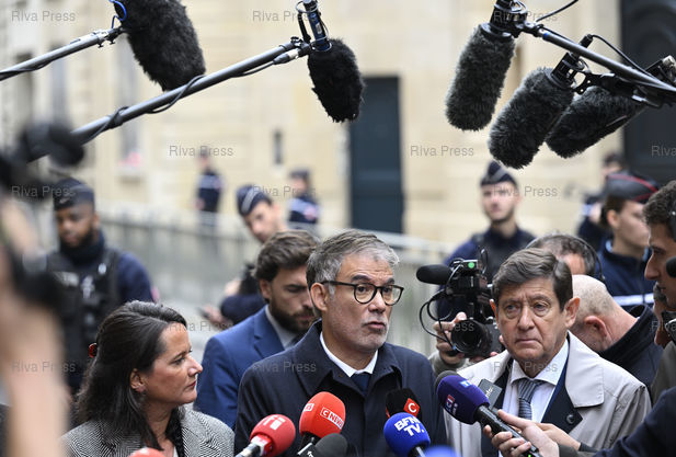 Légende : Le Parti socialiste à l'issue de son entretien avec le premier ministre dans le cadre de ses ultimes consultations avec les forces politiques. Johanna Rolland, Première secrétaire déléguée du PS - Olivier Faure, Premier secrétaire du PS - Patrick Kanner, Président du groupe socialiste au Sénat /// The Socialist Party following its meeting with Prime Minister Sébastien Lecornu as part of his final consultations with political forces. Johanna Rolland, Deputy First Secretary of the Socialist Party - Olivier Faure, First Secretary of the Socialist Party - Patrick Kanner, President of the Socialist Group in the Senate - Paris - 08/10/2025 - Photo © Lionel Préau +33 (0)6 68 12 83 77
