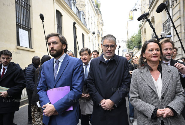 Légende : Le Parti socialiste à l'issue de son entretien avec le premier ministre dans le cadre de ses ultimes consultations avec les forces politiques. Patrick Kanner, Président du groupe socialiste au Sénat - Olivier Faure, Premier secrétaire du PS - Johanna Rolland, Première secrétaire déléguée du PS - Boris Vallaud, Président du groupe socialiste à l'Assemblée nationale /// The Socialist Party following its meeting with Prime Minister Sébastien Lecornu as part of his final consultations with political forces. Patrick Kanner, President of the Socialist Group in the Senate - Olivier Faure, First Secretary of the Socialist Party - Johanna Rolland, First Deputy Secretary of the Socialist Party - Boris Vallaud, President of the Socialist Group in the National Assembly - Paris - 08/10/2025 - Photo © Lionel Préau +33 (0)6 68 12 83 77