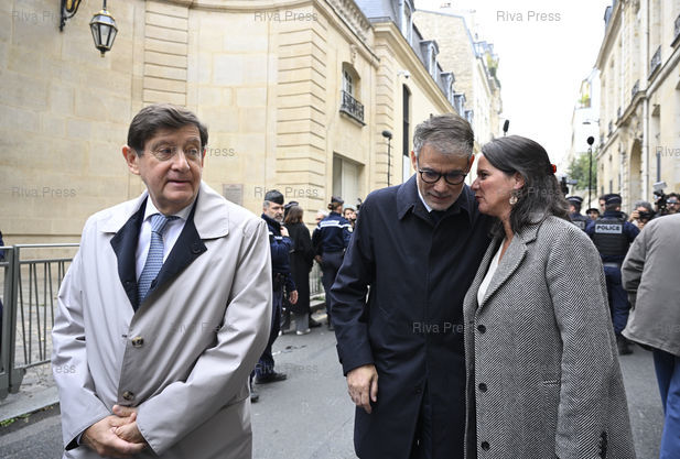 Légende : Le Parti socialiste à l'issue de son entretien avec le premier ministre dans le cadre de ses ultimes consultations avec les forces politiques. Patrick Kanner, Président du groupe socialiste au Sénat - Olivier Faure, Premier secrétaire du PS - Johanna Rolland, Première secrétaire déléguée du PS /// The Socialist Party following its meeting with Prime Minister Sébastien Lecornu as part of his final consultations with political forces. Patrick Kanner, President of the Socialist Group in the Senate - Olivier Faure, First Secretary of the Socialist Party - Johanna Rolland, First Deputy Secretary of the Socialist Party - Paris - 08/10/2025 - Photo © Lionel Préau +33 (0)6 68 12 83 77