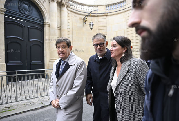 Légende : Le Parti socialiste à l'issue de son entretien avec le premier ministre dans le cadre de ses ultimes consultations avec les forces politiques. Patrick Kanner, Président du groupe socialiste au Sénat - Olivier Faure, Premier secrétaire du PS - Johanna Rolland, Première secrétaire déléguée du PS /// The Socialist Party following its meeting with Prime Minister Sébastien Lecornu as part of his final consultations with political forces. Patrick Kanner, President of the Socialist Group in the Senate - Olivier Faure, First Secretary of the Socialist Party - Johanna Rolland, First Deputy Secretary of the Socialist Party - Paris - 08/10/2025 - Photo © Lionel Préau +33 (0)6 68 12 83 77