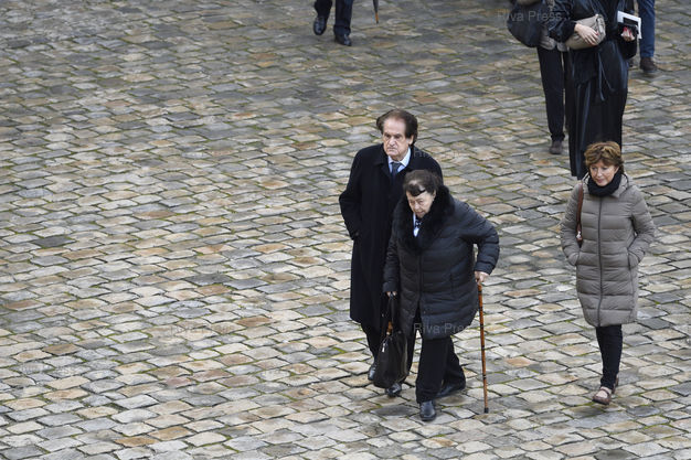 Légende : Cérémonie d'hommage national à Jean d'Ormesson, présidée par Emmanuel Macron à l'Hôtel des Invalides. Jacques Julliard et son épouse Suzanne /// National tribute ceremony to Jean d'Ormesson chaired by Emmanuel Macron at the Hôtel des Invalides. Jacques Julliard and his wife Suzanne - Paris - 08/12/2017 - Photo © Lionel Préau +33 (0)6 68 12 83 77