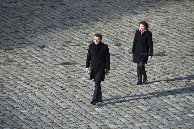 Légende : Cérémonie d'hommage national à Jean d'Ormesson, présidée par Emmanuel Macron à l'Hôtel des Invalides. Emmanuel Macron et Florence Parly, ministre des Armées /// National tribute ceremony to Jean d'Ormesson chaired by Emmanuel Macron at the Hôtel des Invalides. Emmanuel Macron and Florence Parly, Minister of the Armed Forces - Paris - 08/12/2017 - Photo © Lionel Préau +33 (0)6 68 12 83 77